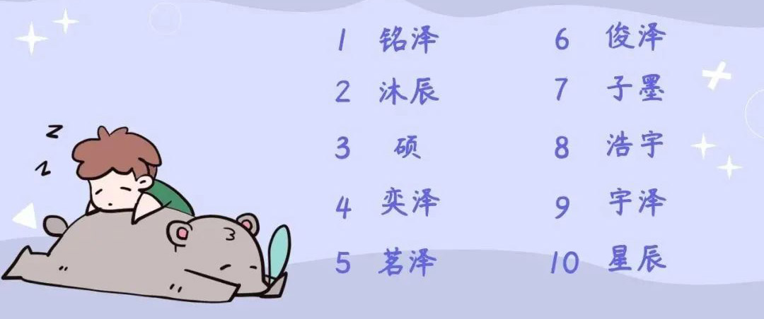 茶陵新生男宝名字常用字TOP10(数据来自网络仅供参考)
